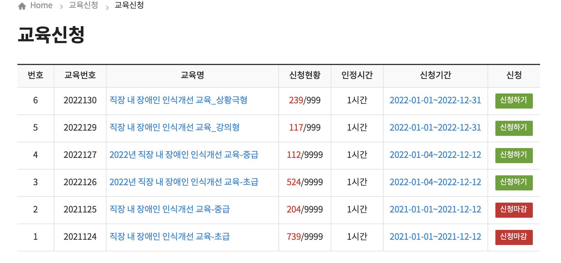 - 2022년 직장 내 장애인 인식 개선 교육 - 초급, 중급